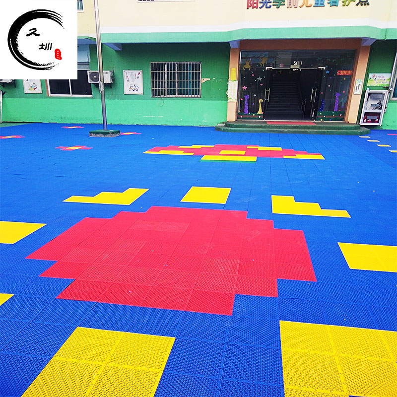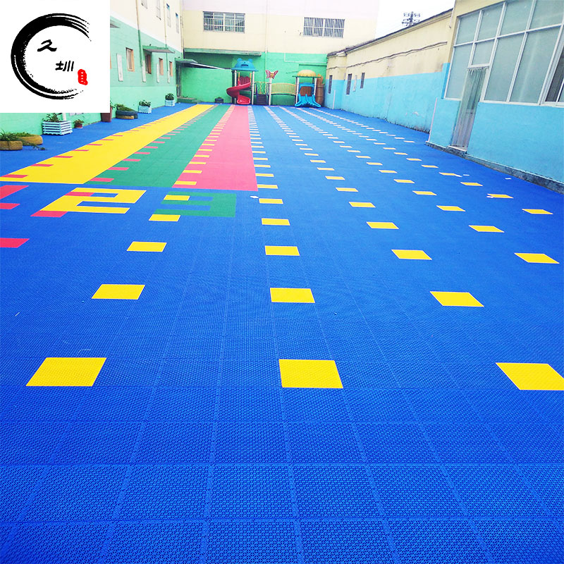 悬浮式拼装地板采用燕山的聚丙烯8303环保材料,解决地板热胀冷缩问题的同时还具有稳定的表面摩擦,添加剂被加入到每一块地板中,能够保障地板在长期受日光照射中不褪色,悬浮式拼装运动地板的结构设计加上坚固的加强型支撑脚结构,创造的垂直的减震效果,防滑的表面可防止运动损伤,良好的球回弹性能和球速保证了地板运动性能,它可用于铺装理想的高性能篮球场、网球场、五人足球场、轮滑球场、乒乓球场以及排球、羽毛球等多功能球场幼儿园地面。