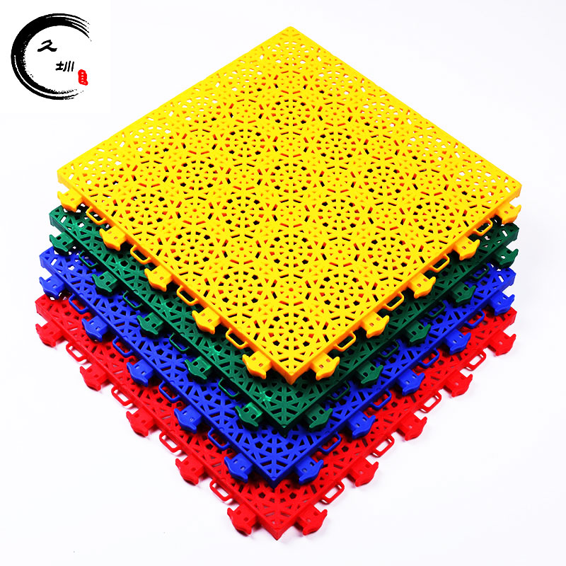每块运动拼装地板底部有676-986个有效支撑点,一方面起到了很好的减震、缓冲效果,另一方面也使运动力量均匀分散到各个方向。这样一来,假如场地上偶有小坑,不管这个小坑在什么位置,都不会影响拼装地板均衡受力。如果是很明显的坑、鼓,在施工前肯定要处理的。