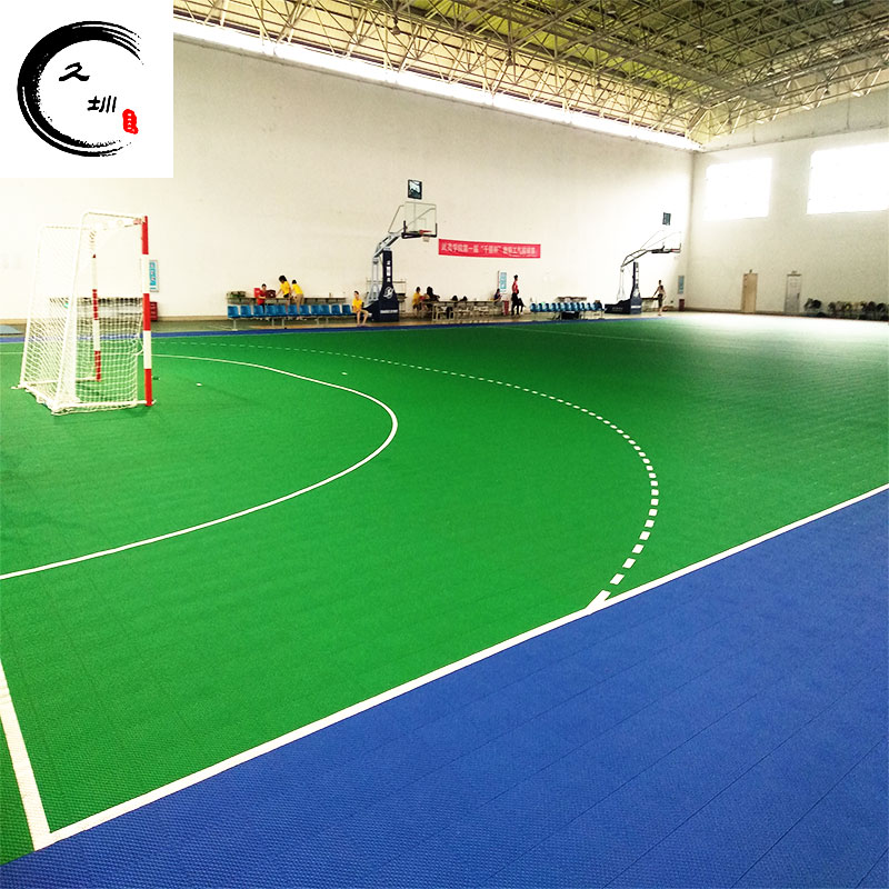 河北久圳悬浮拼装地板,划线使用聚丙烯面层专用漆,不脱落。圆形区域突出的部分,采用相同颜色的面层专用漆,涂成和主体相同的颜色即可。