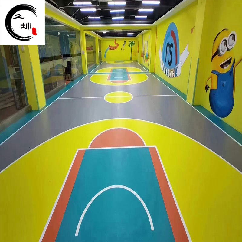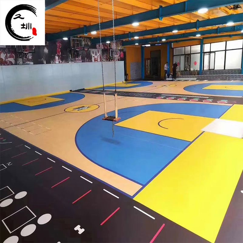 石家庄久圳360定制地胶根据篮球运动特点专业设计的两款地板纹路(磨砂纹、小球纹),满足篮球运动对场地的摩擦系数要求,确保防滑安全,